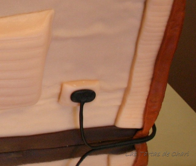 El enchufe salía de la parte trasera de la tarta y llegaba hasta la parte delantera como veréis en la foto siguiente.